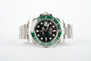 ROLEX SUBMARINER 116610LV | Beautiful HULK! Officially certified chronometer automatic self-winding movement. Stainless steel 40mm case with 48 hour power reserve, green ceramic insert with stainless steel unidirectional rotating bezel. Scratch resistant sapphire crystal. Green dial with luminous round, triangular and baton steel indexes, outer minute/seconds track, aperture for the date. Luminous Mercedes hands. Date calendar at 3 o'clock. Stainless steel Oyster bracelet with Oysterlock clasp and Glidelock. Complete with box, papers, warranty card, and hang tags.