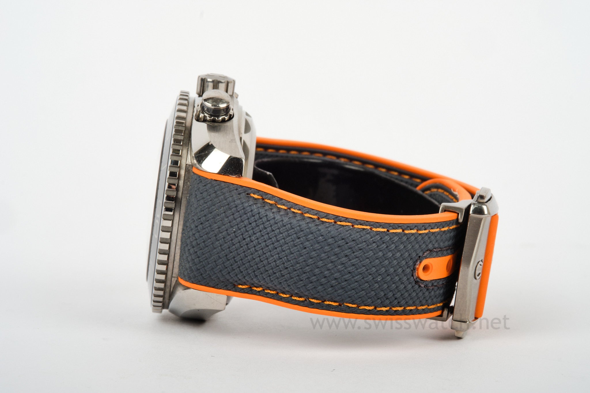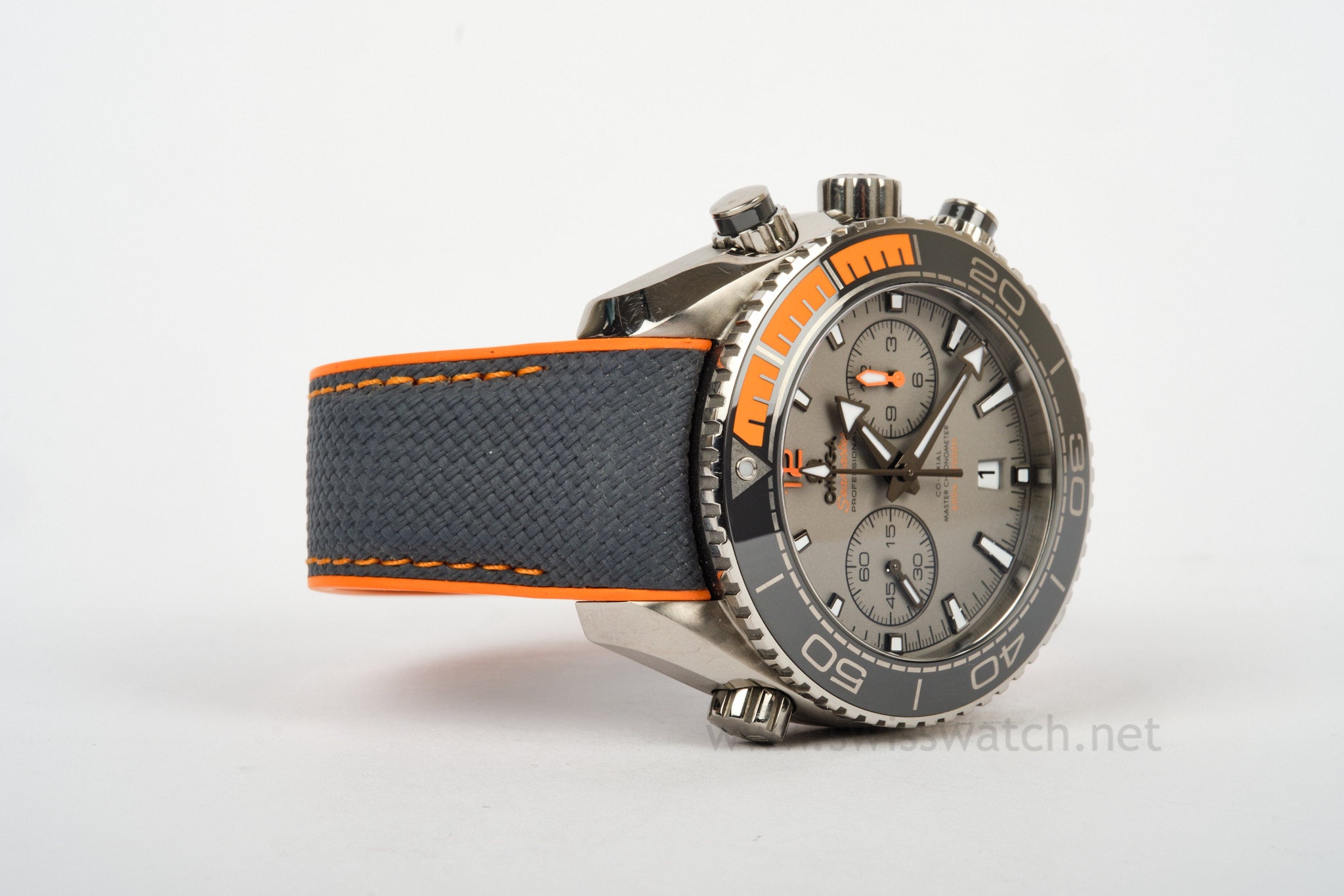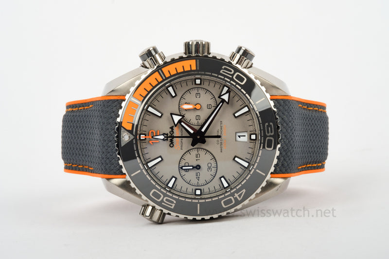This is one of the most comfortable watches ever made! The Omega Planet Ocean in titanium with grey dial / bezel comes from the factory with a blue strap including a titanium clasp. The watch is in very good pre-owned wrist ready condition and keeps amazing time. There are noticeable but insignificant blemishes here are there as evident in our hi-res photographs of the watch. You can see minor wear on the lugs and case but the watch has not been polished and most collectors will appreciate the original lines over an over polish any day.